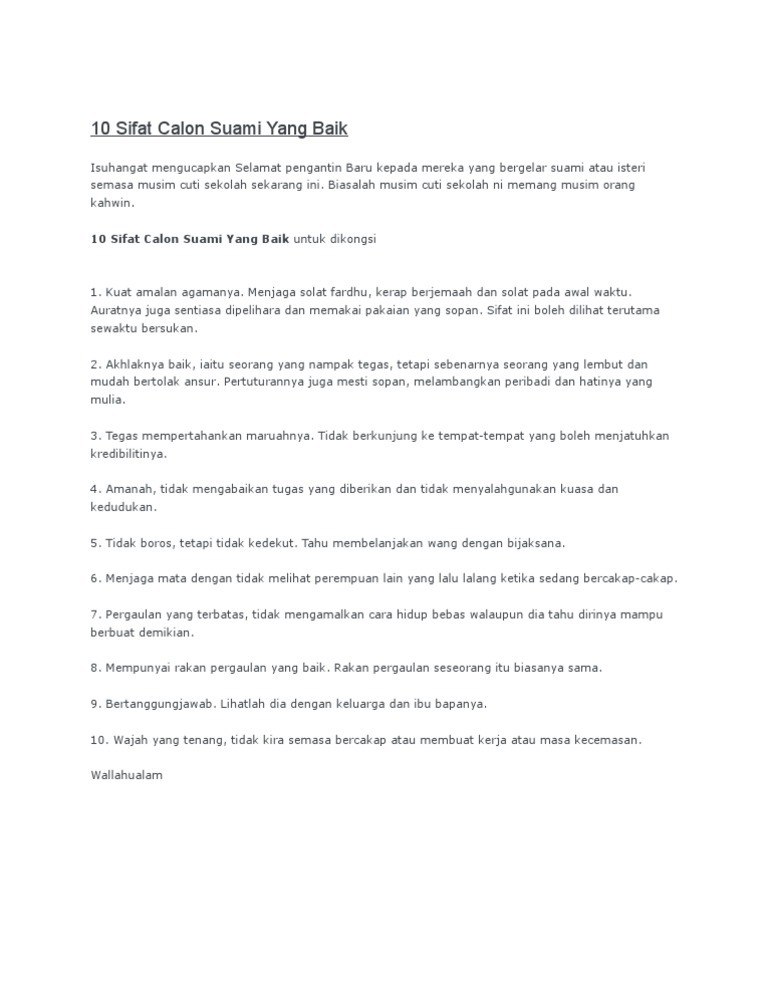 Wanita Si Hati Tisu 10 Sifat Calon Suami Yang Baik