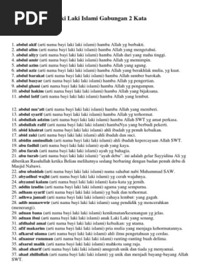 814 Nama Bayi Laki Laki Islami Gabungan 2 Kata Pdf