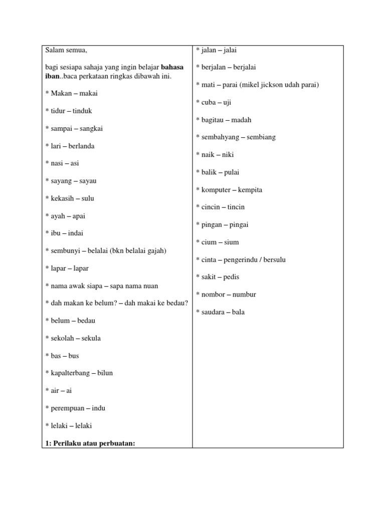 Bahasa Iban Peringkat 1 Nota