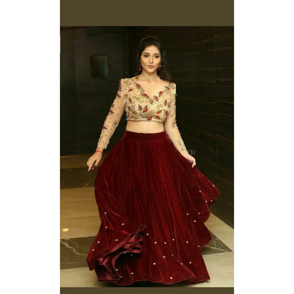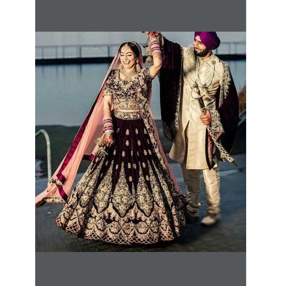 Charming Maroon Color Velvet Designer Wedding Wear Lehenga Choli