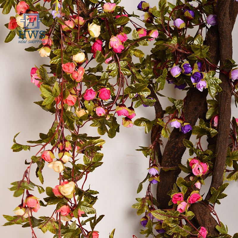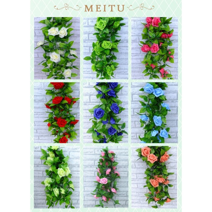 Hws 22 Kuntum Bunga Mawar Palsu Menjalar 2 2m Bahan Sutra Plastik