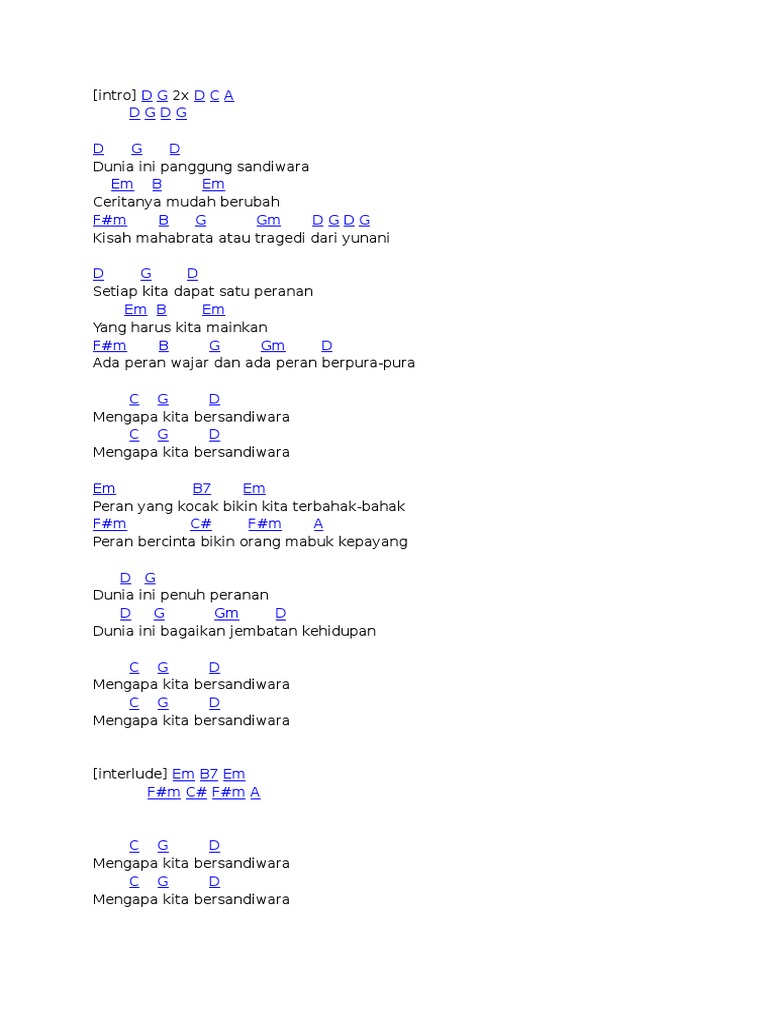 Kunci Gitar Dan Lirik Lagu Panggung Sandiwara Mynotepat Com
