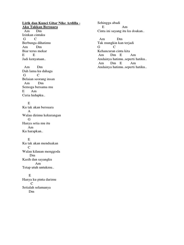 Lirik Lagu Dan Chord Kunci Gitar Panggung Sandiwara Nike Ardilla