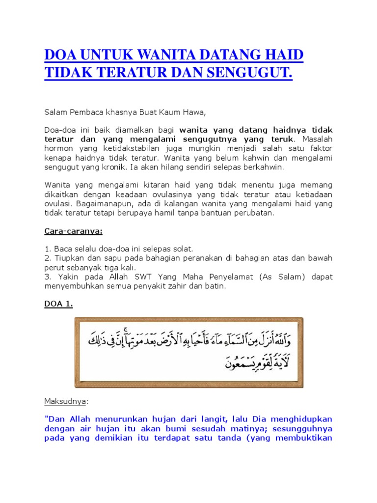 Doa Untuk Wanita Datang Haid Tidak Teratur Dan Sengugut
