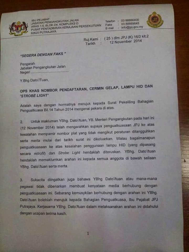 Arahan Penangguhan Operasi No Plet Jpj Berkuat Kuasa Serta Merta