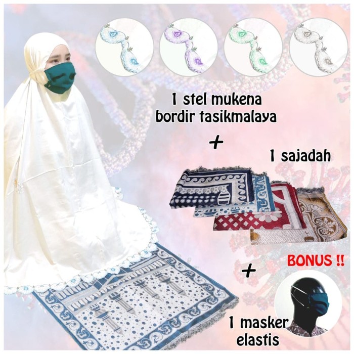 Jual Set Perlengkapan Sholat Wanita Mukena Bordir Sajadah Bonus