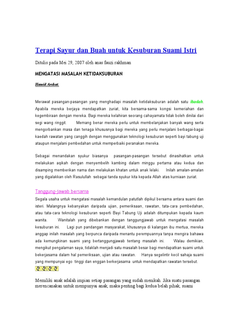 Terapi Sayur Dan Buah Untuk Kesuburan Suami