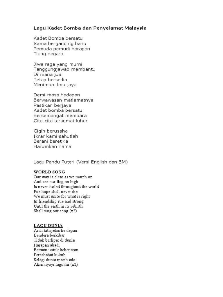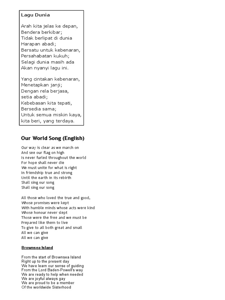Persatuan Pandu Puteri Malaysia Lagu Dunia Pandu Puteri