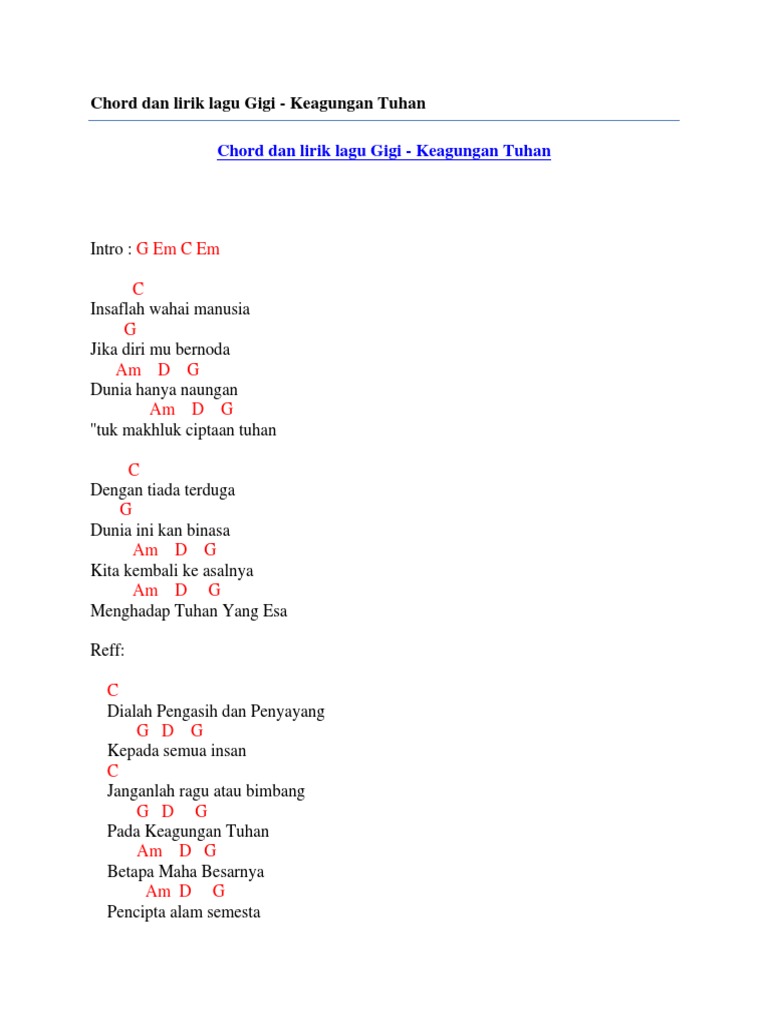 Chord Dan Lirik Lagu Gigi Keagungan Tuhan
