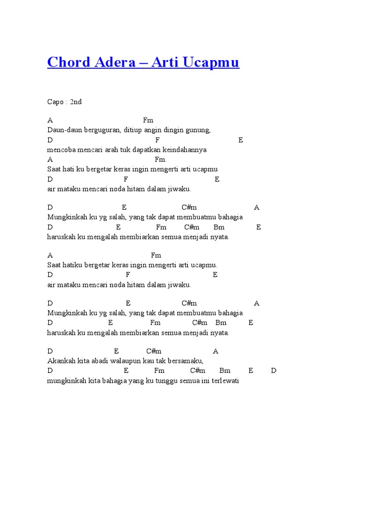 Kunci Gitar Peterpan Kukatakan Dengan Indah Chord Dasar Kunci
