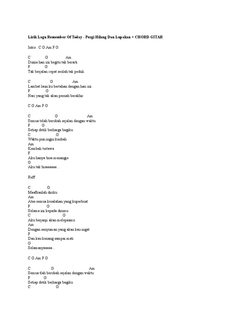 Chord Pergi Hilang Dan Lupakan Remember Of Today Dunia Hari Ini