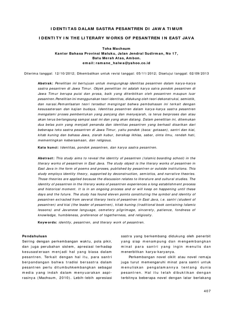 Identitas Dalam Sastra Pesantren Di Jawa Timur Identity In The