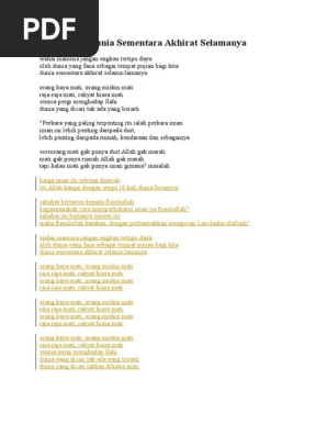 Lagu Dunia Sementara Akhirat Selamanya Lirik