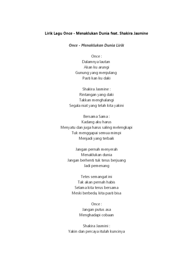 Lirik Lagu Menaklukkan Dunia Once Mekel Feat Shakira Jasmine Tabloidbintang Com