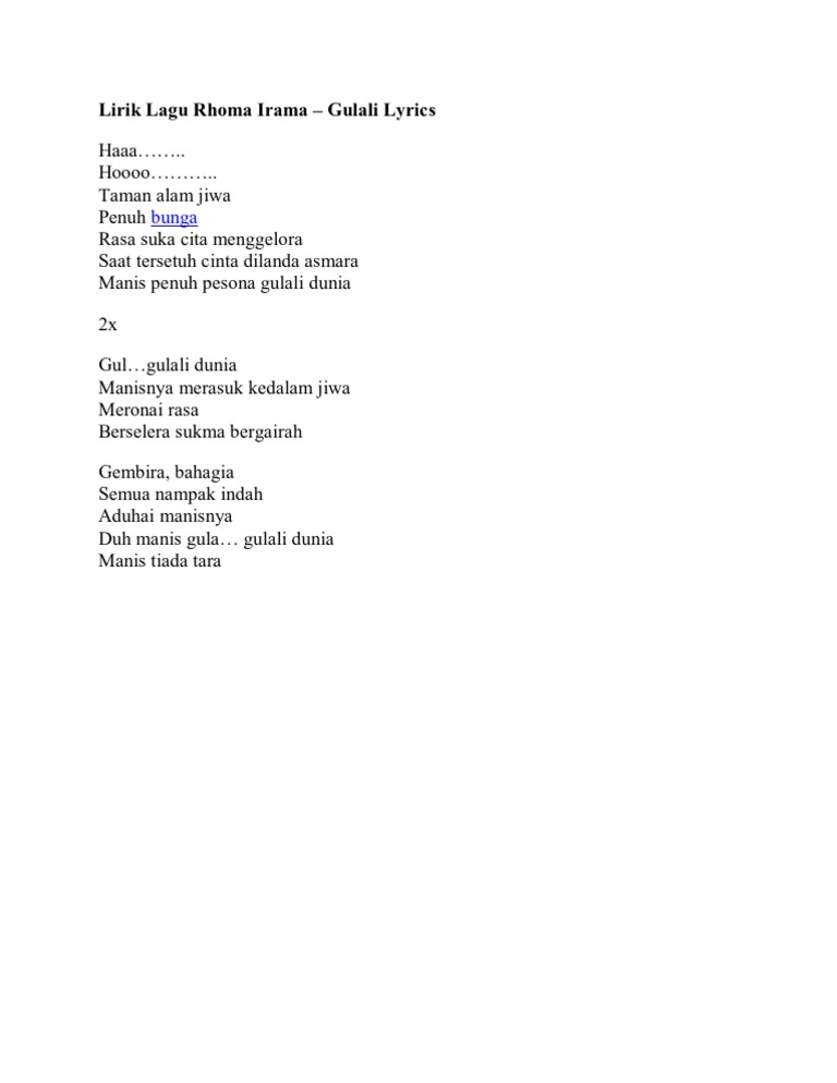 Gulali Rhoma Irama Lirik Lagu Rhoma Irama Rhoma Irama Com