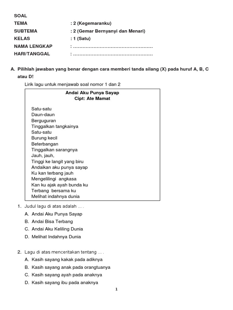 Instrumen Evaluasi Kelas 1 Tema 2 Docx
