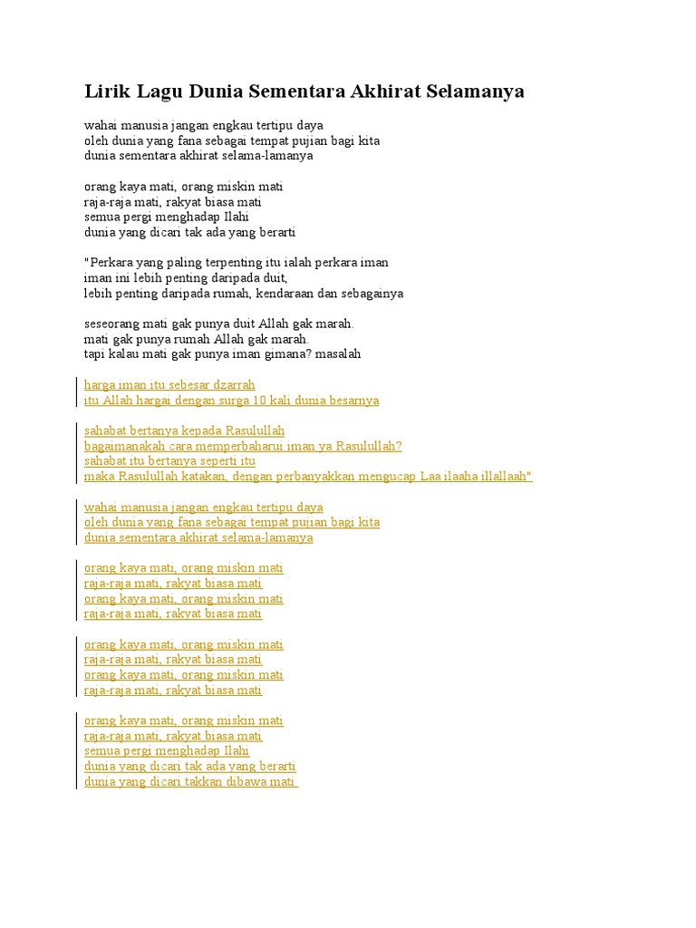 Lirik Lagu Dunia Sementara Akhirat Selamanya 2