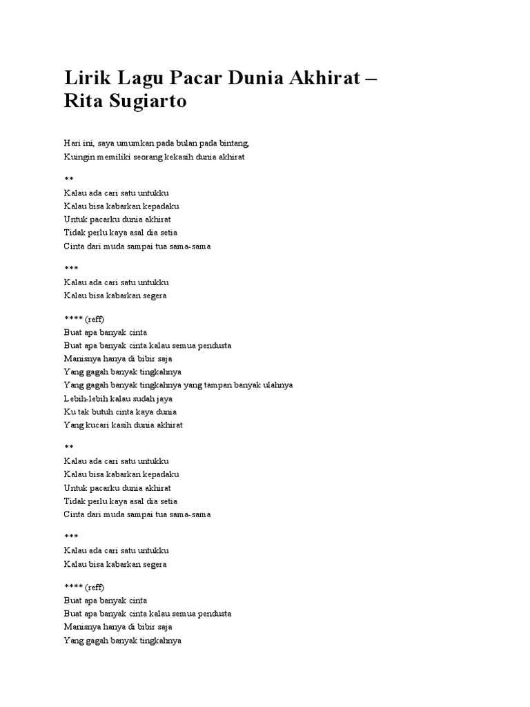 Lirik Lagu Pacar Dunia Akhirat Rita Sugiarto Lirik Lagu 2018