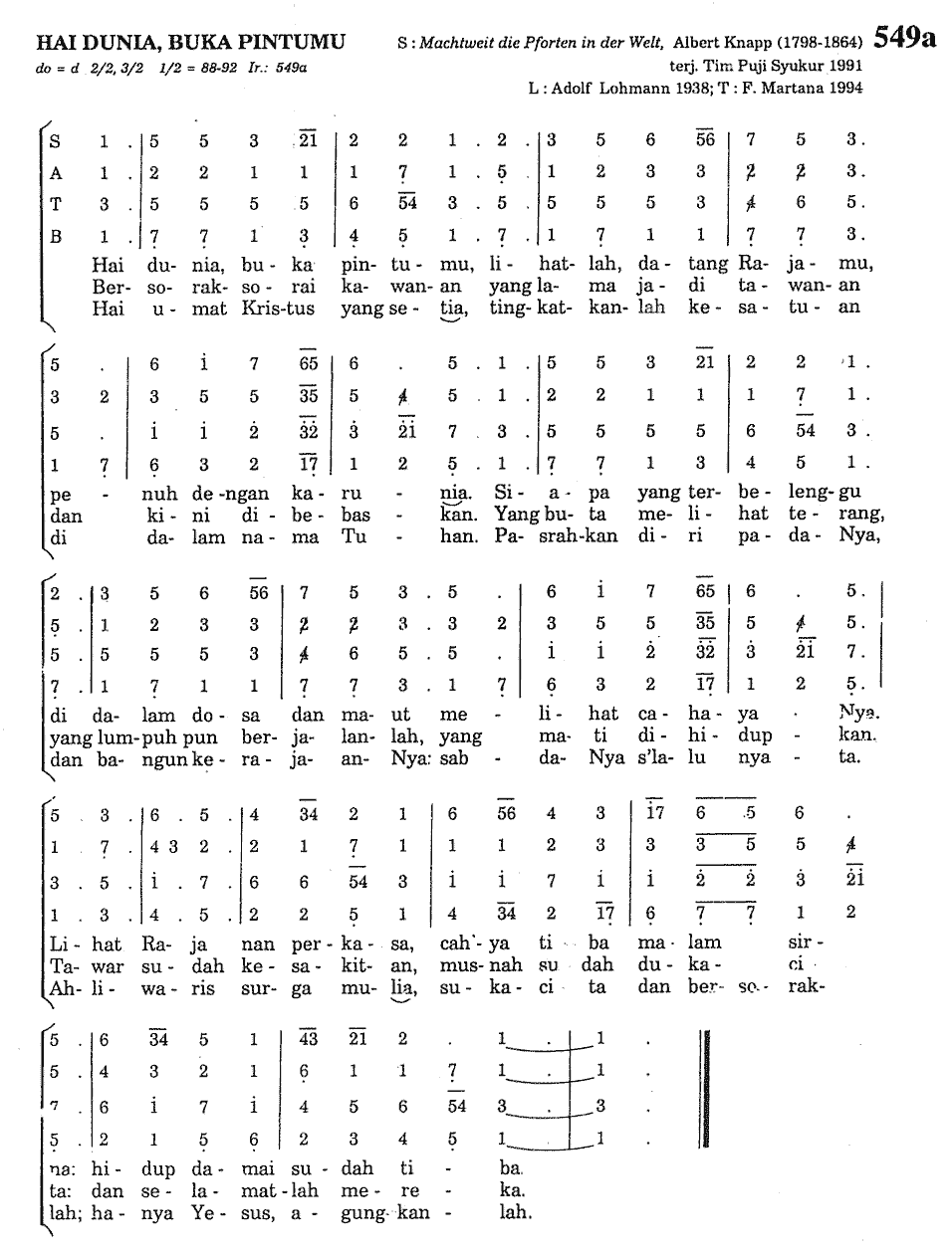 Puji Syukur 549 Hai Dunia Buka Pintumu