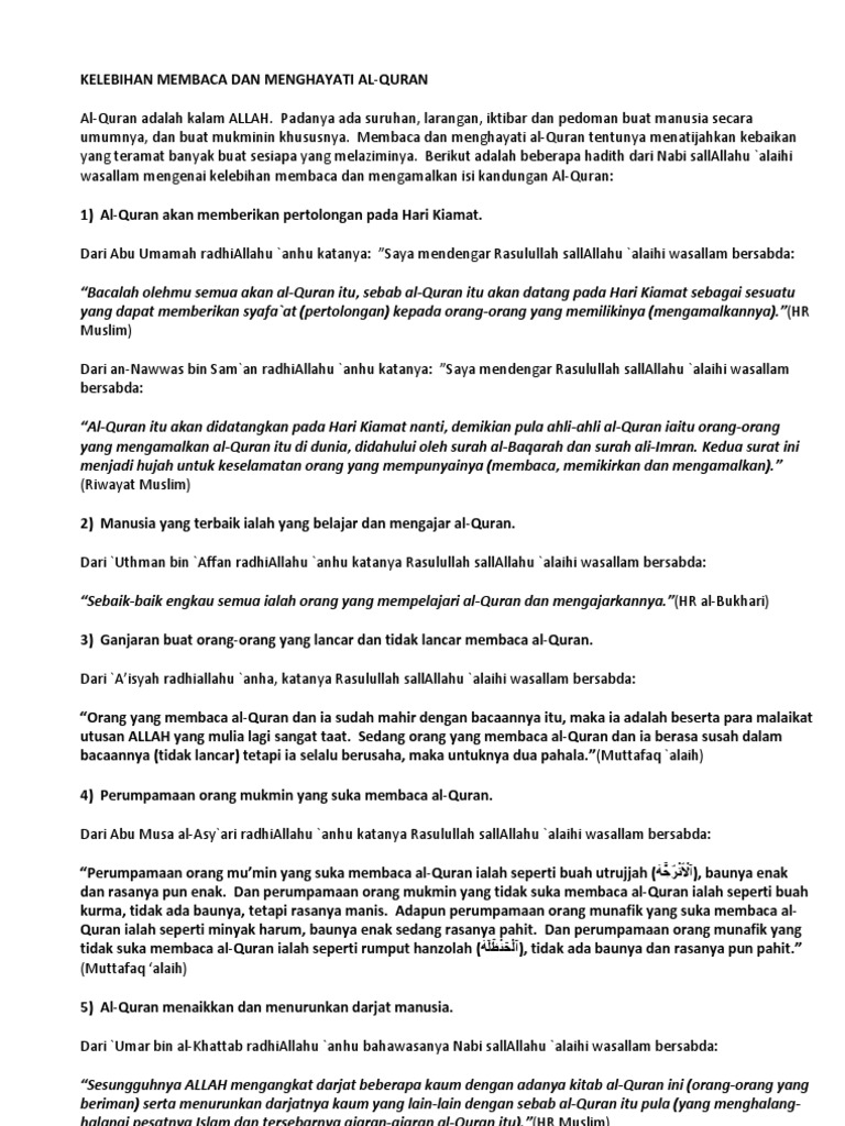 Wabillah Kelebihan Membaca Dan Menghayati Al Quran