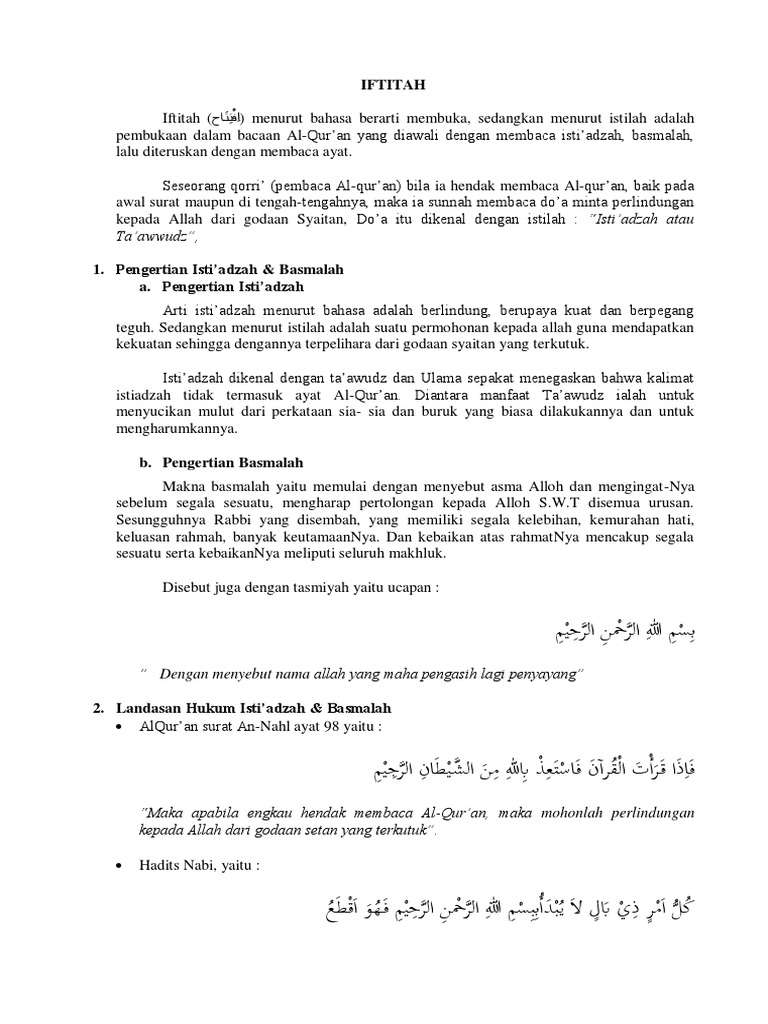 Hadist Tentang Bacaan Basmallah Dan Ta Awudz Alquran Dan Hadits