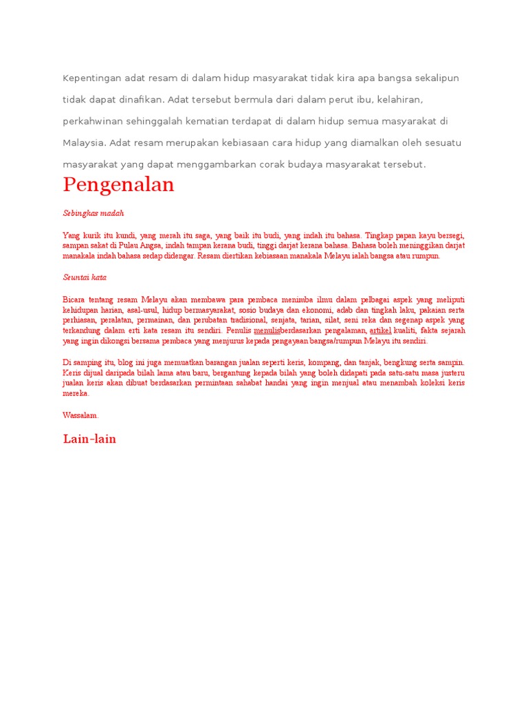 Kepentingan Adat Resam Di Dalam Hidup Masyarakat Tidak Kira Apa