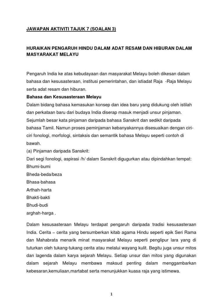 Pengaruh Hindu Dalam Adat Istiadat Melayu