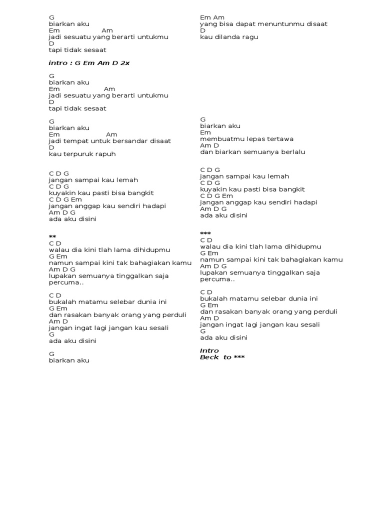 Lirik Dan Chord Lengkap Lagu Lirik Dan Not Angka Pianika Ada Aku