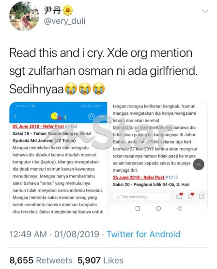 Setuju Dedah Info Suspek Bunuh Zulfarhan Gadis Kongsi Kisah Ahli