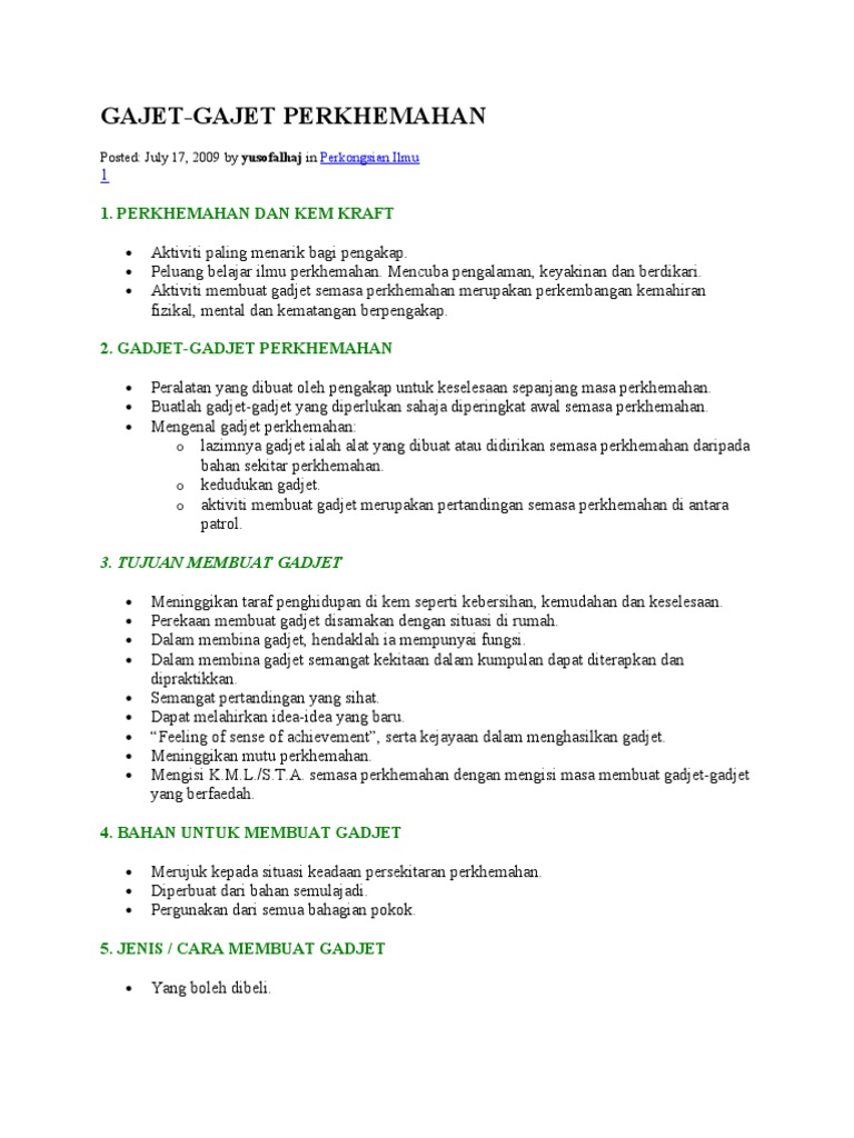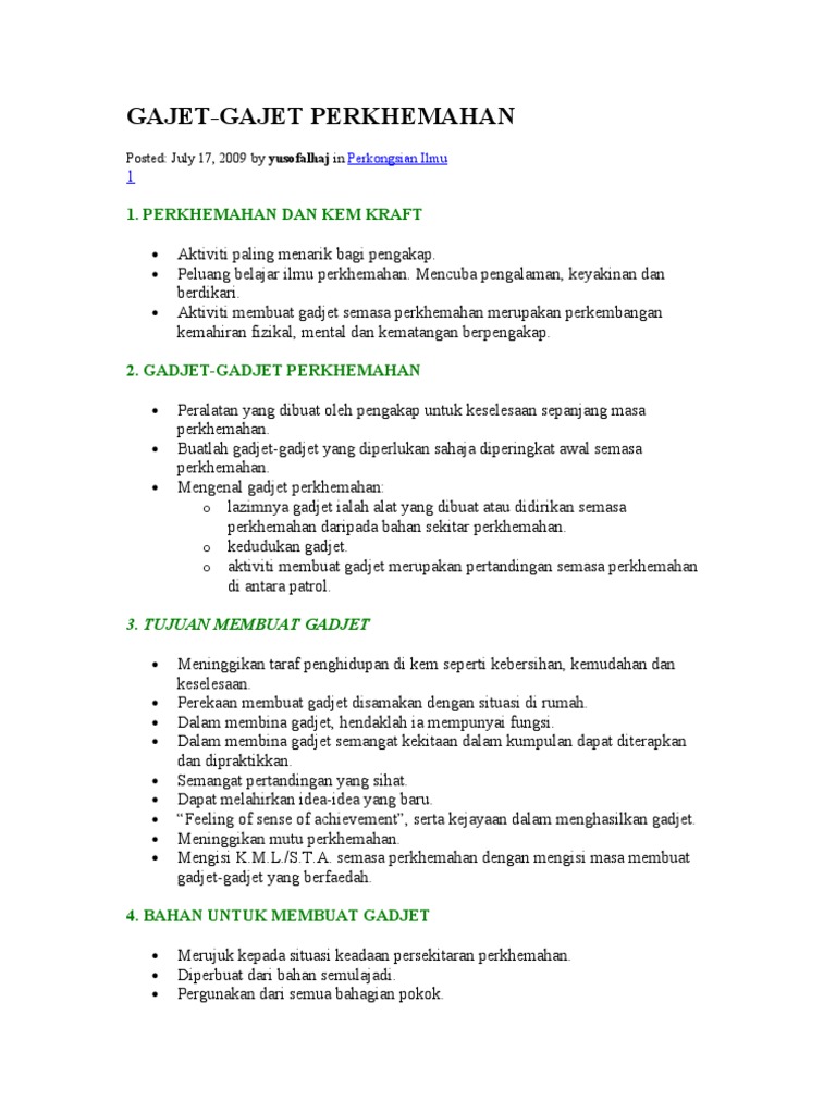 1 Perkhemahan Dan Kem Kraft 3 Tujuan Membuat Gadjet